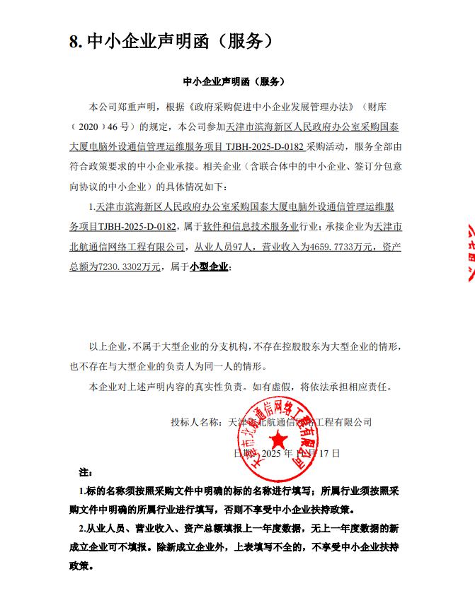 天津市滨海新区人民政府办公室采购国泰大厦电脑外设通信管理运维服务项目(项目编号:TJBH-2025-D-0182)中标结果公告