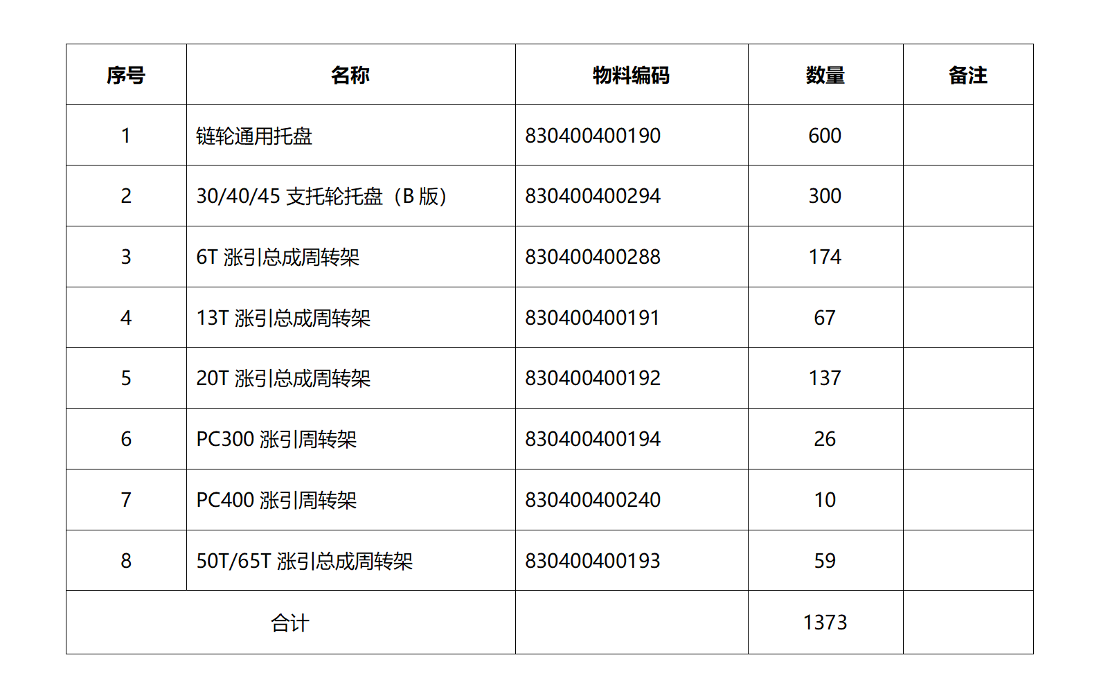5. 项目概况:履带涨引周转货架,共计8个品种,1373件,具体型号数量如下