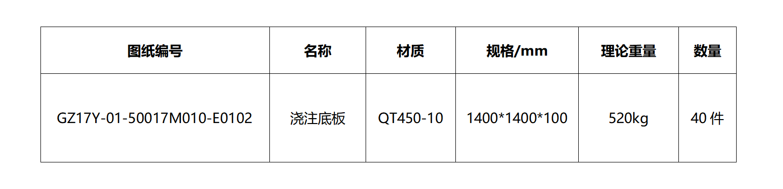 5. 项目概况:项目为传动分公司造型线浇注底板的制作,本项目根据图纸要求,重新铸造、加工出成品使用,材质QT450,数量40件。